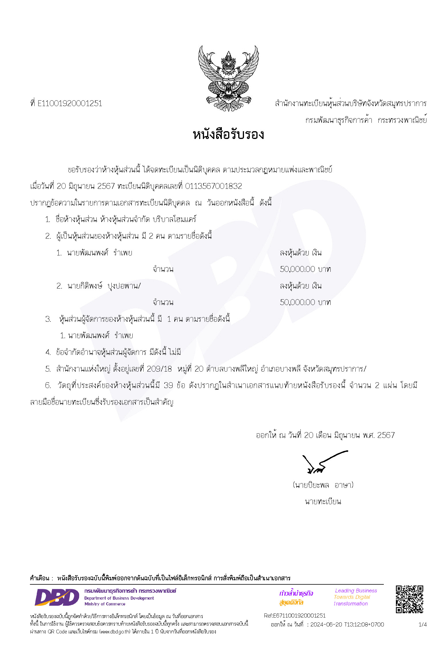 209/18 หมู่ 20 ต.บางพลีใหญ่ อ.บางพลี จ.สมุทรปราการ 10540